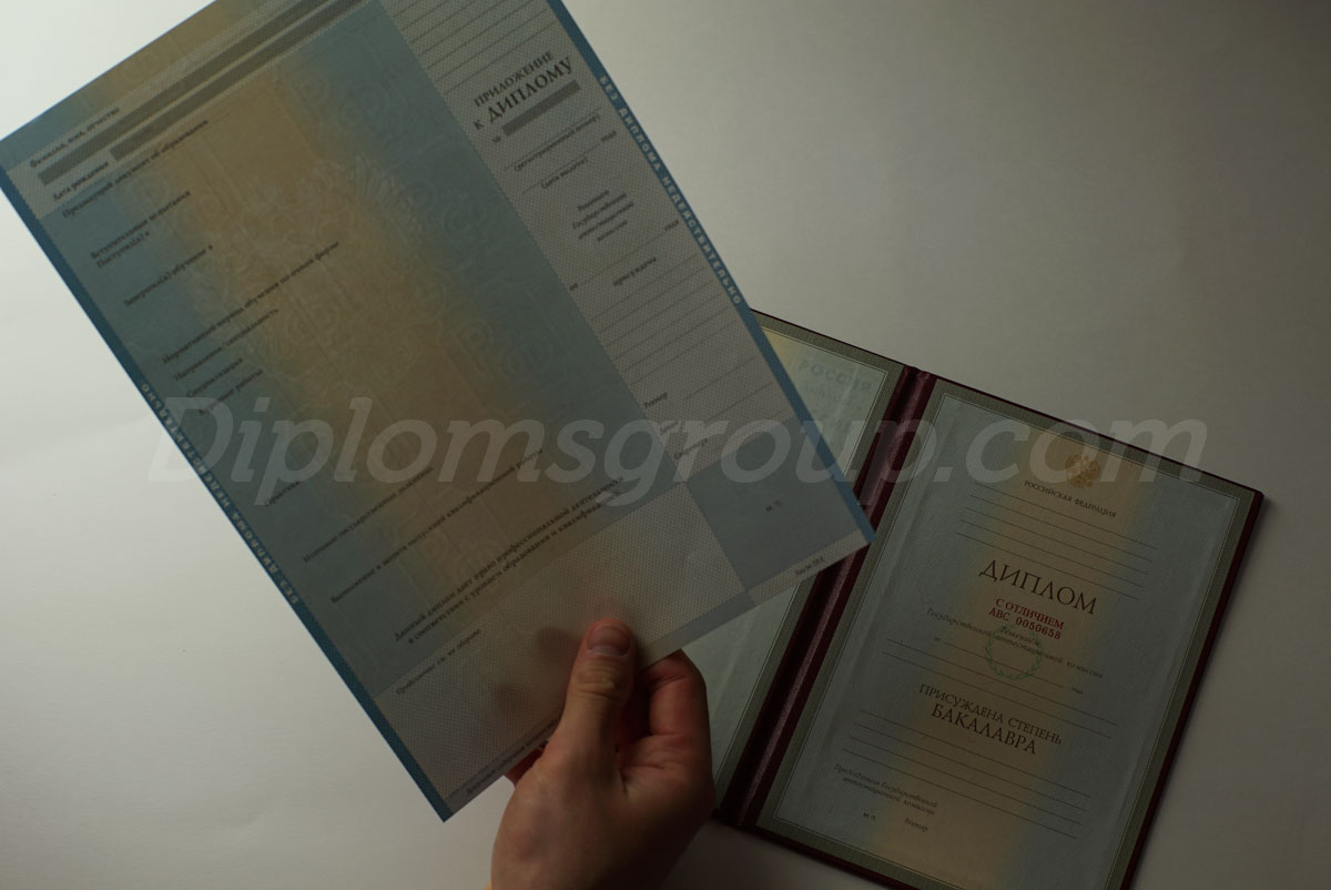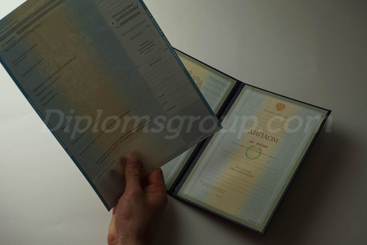 Со времен СССР и после его распада документ сильно изменился. Появились голограммы, оттиски, водяные знаки, печати и прочая защитная символика. Стали использовать специальную бумагу и бланки ГОЗНАКа. Стандартный диплом с 1997 по 2003 -й годы выглядел следующим образом: